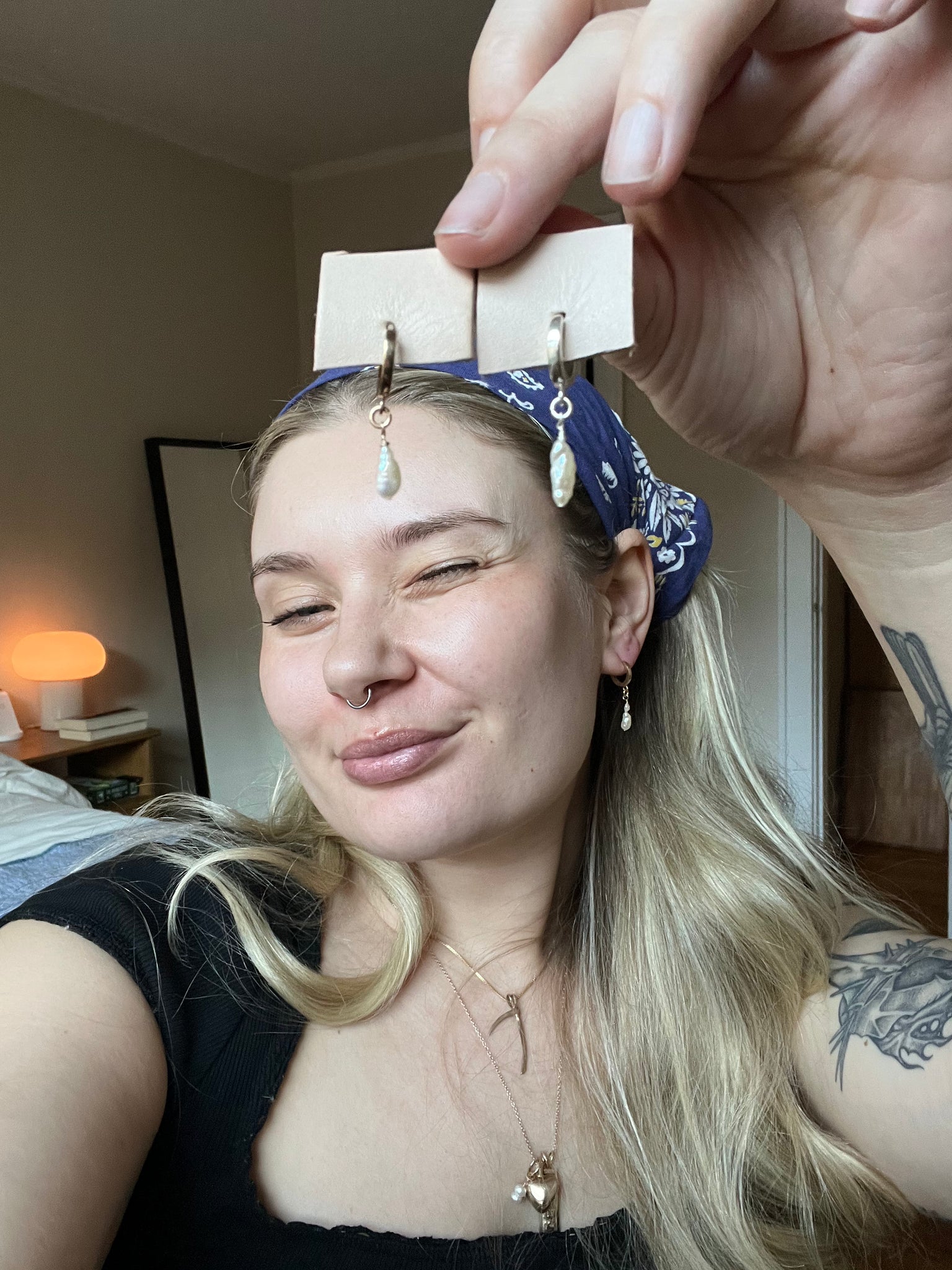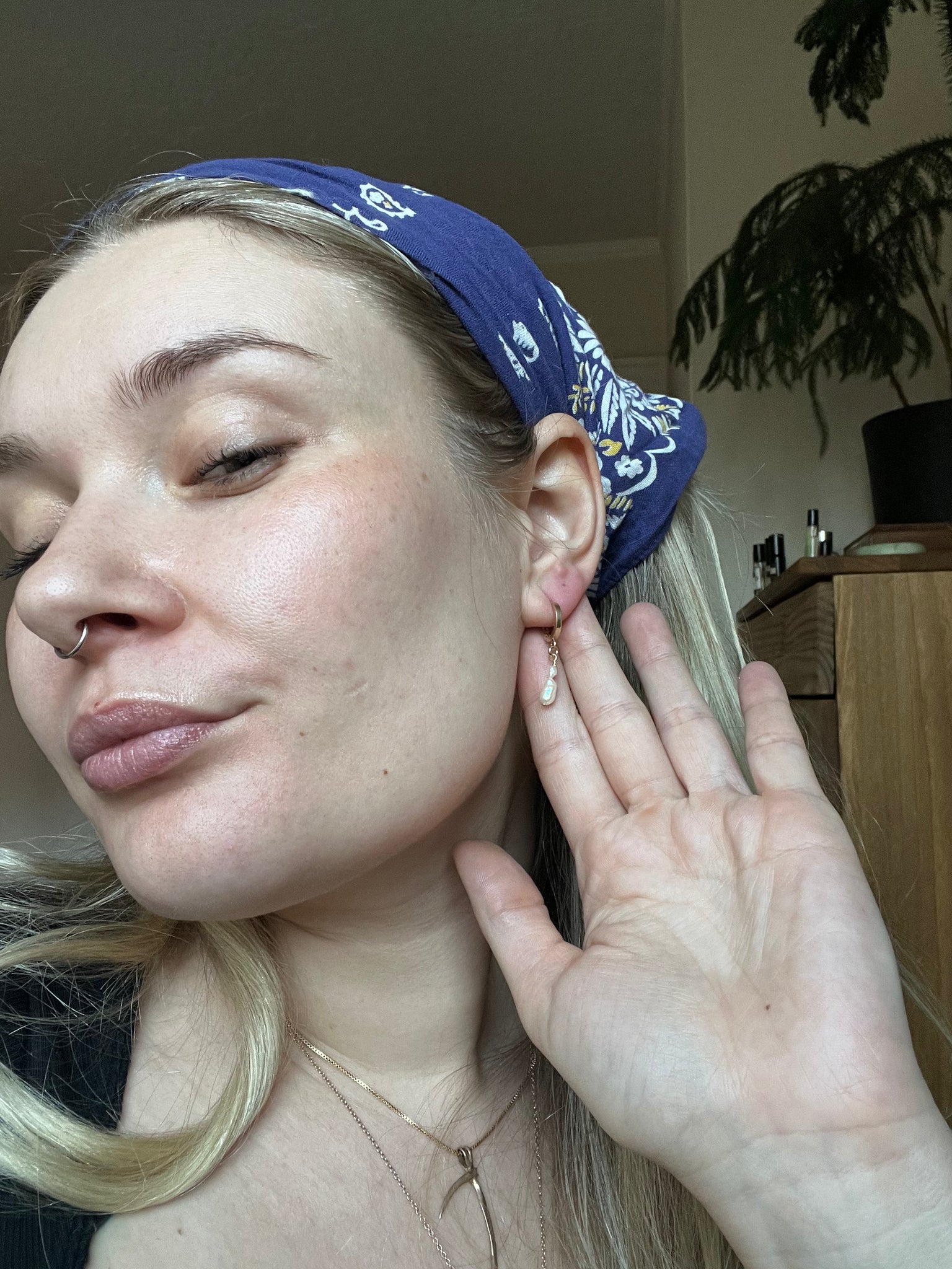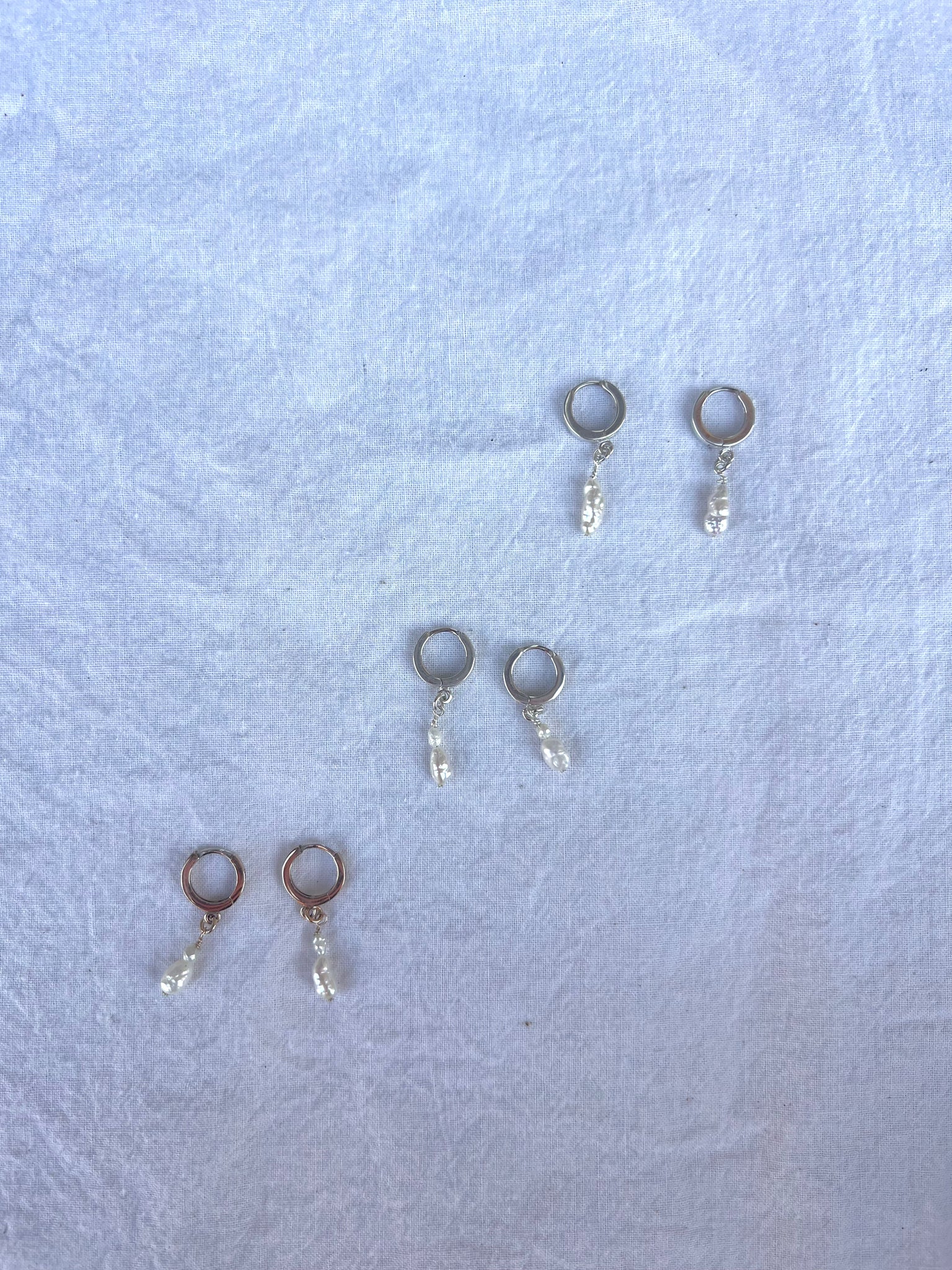 Japanese pearl hoops on continuous closed ring hoops, great for those of us with stretched lobes